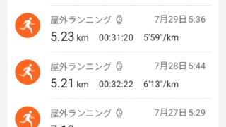 今月は頑張ってトータル171kmと良く走りましたノルマを最低でも5kmとして、7月7日からは走る時間帯を夕方から早朝に変えたため、雨が降らない限り毎日走れるようになったので距離が伸びました〜友達には250km走る猛者もいるので大したことない...