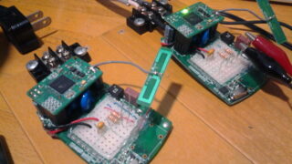 スマートプラグを改造し、外部の電流センサと接続できるようにした。そこに、大阪市立大で開発中の磁性エネルギーセンサを接続することになった。パーマロイと言うカセットレコーダのヘッドに使われていた部材を磁界測定に使うというアイデアが具現化したもの...