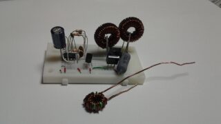 ネットに紹介されている回路は、インダクタが470μH程度と大きいが、10kHzでデューティ1%以下だとパルス幅は1μ以下なので、インダクタンスは小さくて大丈夫だろう。机上計算して、手巻インダクタ22μを利用。NchFETも、耐圧さえあれば適...