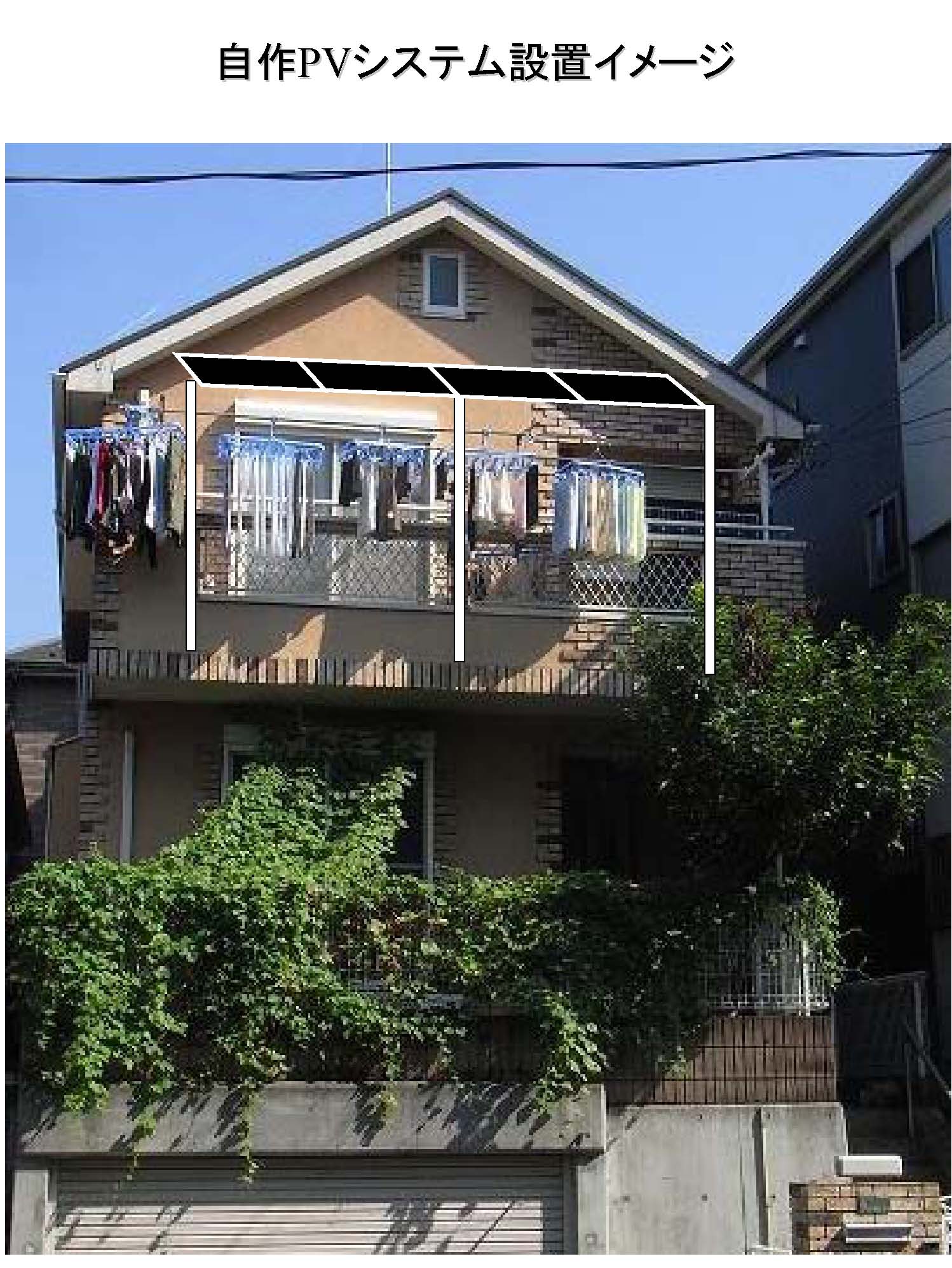 妻から屋根のないベランダに屋根が欲しい欲しいとずっと言われ続けて苦節10年。自分の興味とうまく合致したPVシステムにて実現することに。