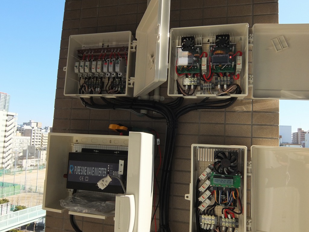 システムで利用する機材がようやく準備出来た。これらを設置し、配線する必要があるが大阪では私がするわけにもいかず、地場の電気設備会社に依頼しなければならない。しかし、通常の屋内配電工事ではなく直流電力配電だ。一般の電設会社には経験がないはずで、果たして引き受けてくれるところはあるだろうか。