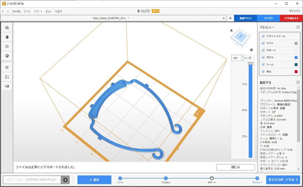 3DプリンタメーカのZortraxが無償提供してるモデルにずり落ちないように頭上につけるパーツを追加してみました。