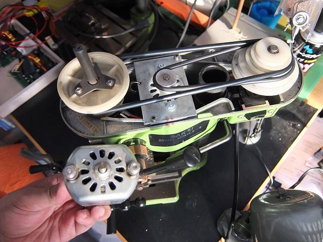 オーダーしていたモータとプーリーベルトが届いたので、さっそくモータを交換。プーリーベルトも新しいものに交換。