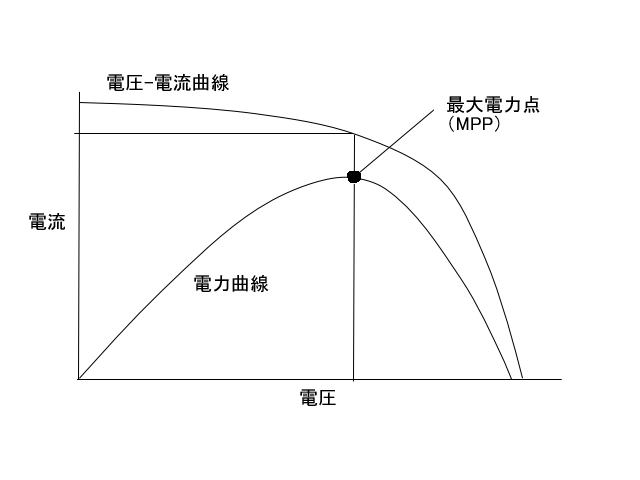 電圧-電流曲線に接する長方形の面積が電力になるため、面積を最大にする電流値、電圧値となるように制御してあげればいい。
