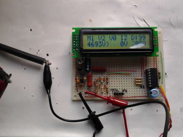 今までは、ブレッドボードという仮配置の実験ボード上で制御回路を組んでいたのだが、太陽光パネル近傍に組込むことを考えて、蛇の目基板にきれいに回路を作り込んだ。熱が出ないロジック部分は、高密度タイプが好みなので左下には電源引込、電圧変換、左上に液晶パネルコネクタ、右下にPIC周辺と配置してみた。中央部の空きスペースは、まだ、検証途中のFETドライブ回路が確定したら組込む予定。