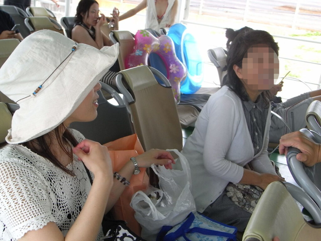 船の時間が近づくと、ぱらぱらと客が集まってきた。島の人は、少なく、観光客が多い感じ。おいおい。おねぇさん、水着で、浮き輪を腰にくっつけたまま、島に渡るんかい?っていうのも混じっている。それにしても、水着で島を歩くのは、ちょっと変でね?と一人ツッコミしてみても、むなしいだけである。