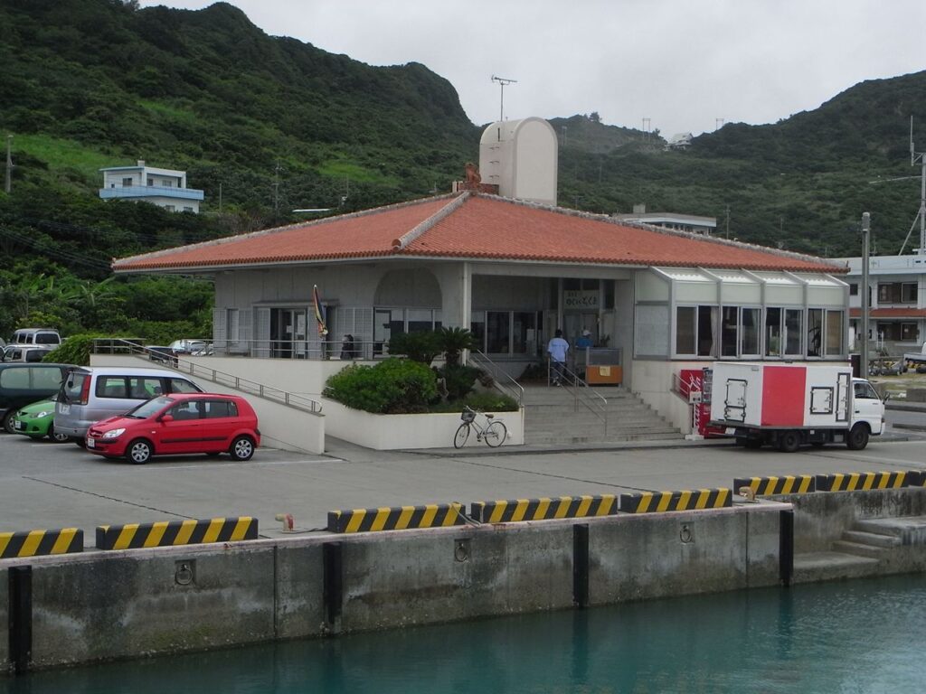待合所は、のんびりした雰囲気。港には、高速艇の接岸する浮島ができていたが、全体的な雰囲気は、あまり変わらないか。さんさんビーチの方向には、高いフェンスが設置され、ビーチまでは見通せなくなっていた。
