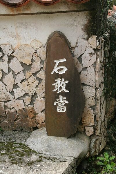 シーサーと並び、沖縄独特の魔除けのおまじないです。まっすぐにしか進めない沖縄の魔物がT字路の突き当たりのこの石にぶつかって退治できるという魔除けだそうです。そのため、T字路には必ず石敢當があるわけです。