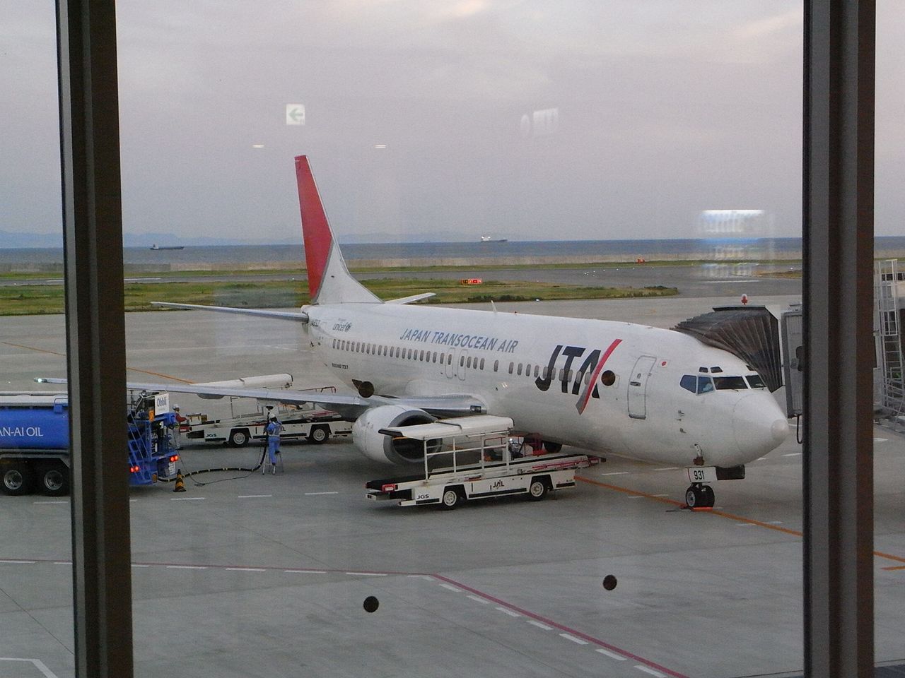 駐機場に着くや、つなぎを来た整備士がどやどやと乗り込んできました。私は二階席通路側だったので、すぐ隣を険しい顔をしたおじさんたちが走り抜けていきました。